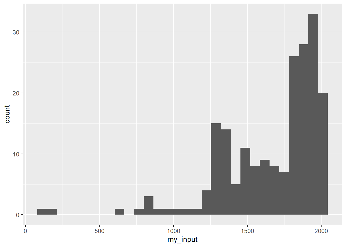 # for plottingdf =as.data.frame(my_input)# have a lookggplot(df) +geom_histogram(aes(my_input))